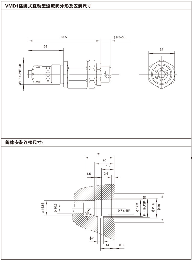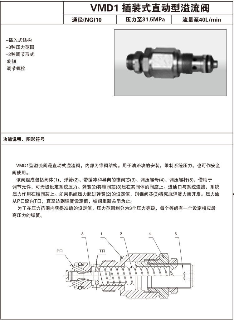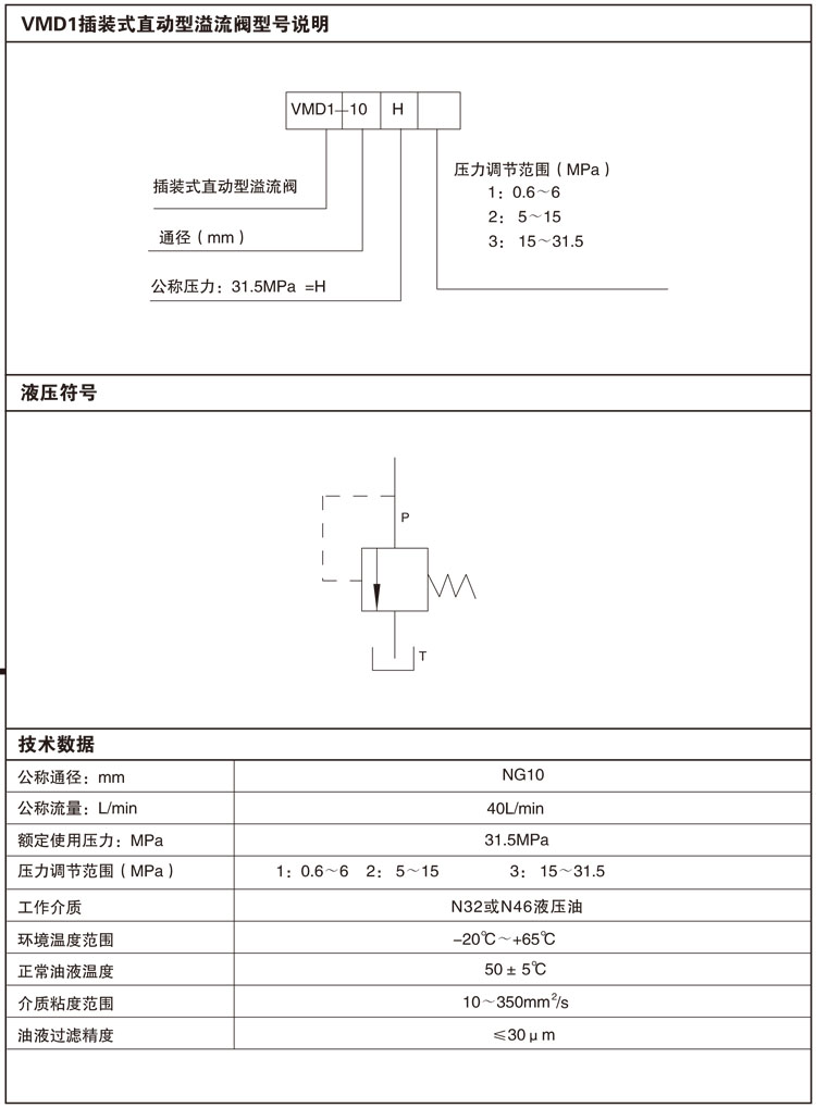 VMD1-10H1,VMD1-10H2,VMD1-10H3,插裝式直動型溢流閥