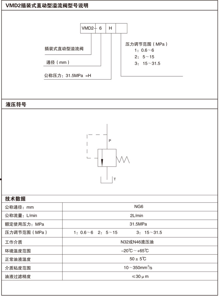 VMD2-6H1,VMD2-6H2,VMD2-6H3,插裝式直動(dòng)型溢流閥