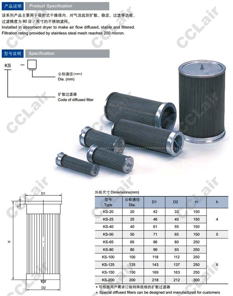 詳細(xì)信息 KS-20,KS-25,KS-40,KS-50,KS-65,KS-80,KS-100,KS-125,KS-150,KS-200,擴(kuò)散過濾器