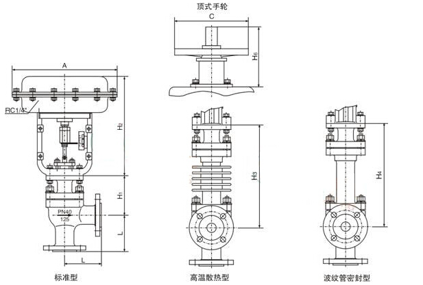 標(biāo)準(zhǔn)型-17~+230℃、散熱型+230~+450℃、低溫型-60~-196℃、波紋管密封型-40~+350℃