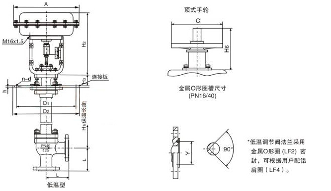 注:1、保溫長(zhǎng)度以700mm為例,表中重量為PN16數(shù)據(jù),也可安裝側(cè)裝式手輪。