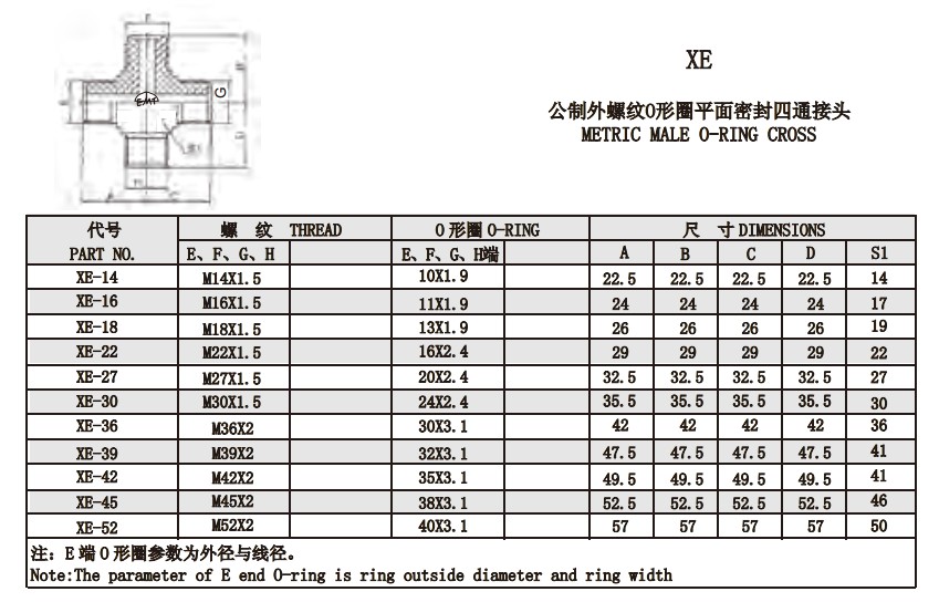 XE-14,XE-16,XE-18,XE-22,XE-27,XE-30,XE-36,XE-39,XE-42,XE-45,XE-52,平面密封接頭