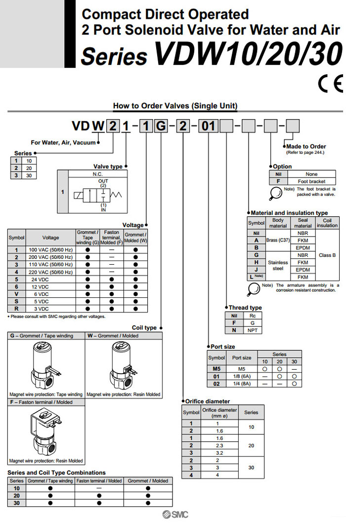 VDW11-1G,VDW11-1W,VDW31-1G,VDW21-1G,VDW31-5F,VDW31-1W,VDW31-6F,SMC直動式2通電磁閥