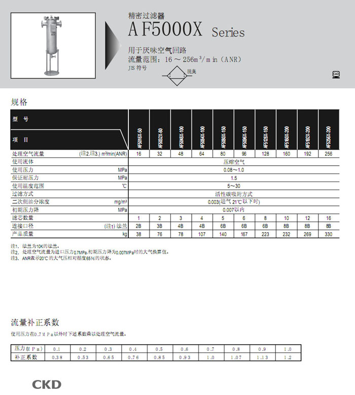 AF5016,AF5032,AF5048,AF5064,AF5080,AF5096,AF5128,AF5160,AF5192,AF5256,CKD精密過濾器