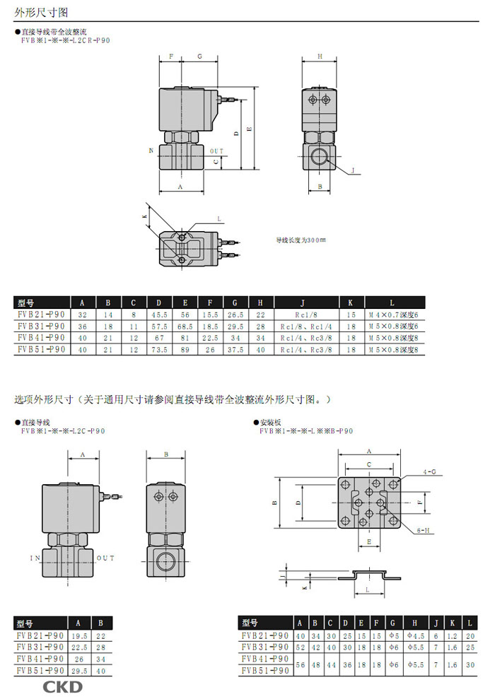 FVB21-6,FVB31-6,FVB31-8,FVB41-8,FVB41-10,FVB51-8,FVB51-10,FVB21-6-Z-LC2R-P90,CKD直動式2通電磁閥