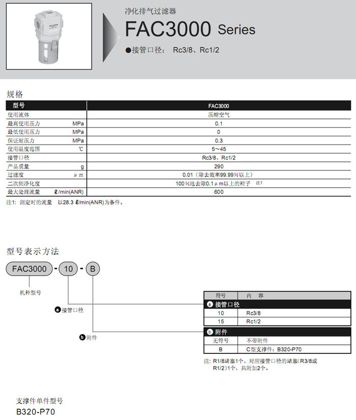 詳細(xì)信息 FAC3000-10,FAC3000-15,CKD凈化排氣過濾器