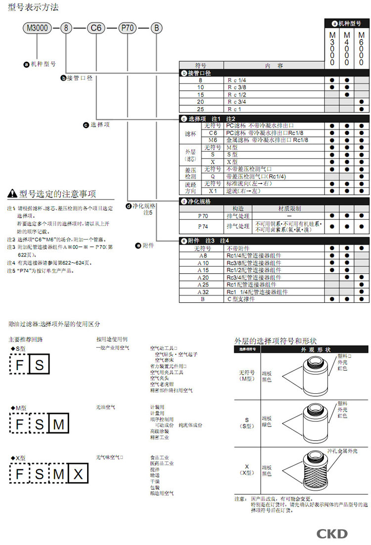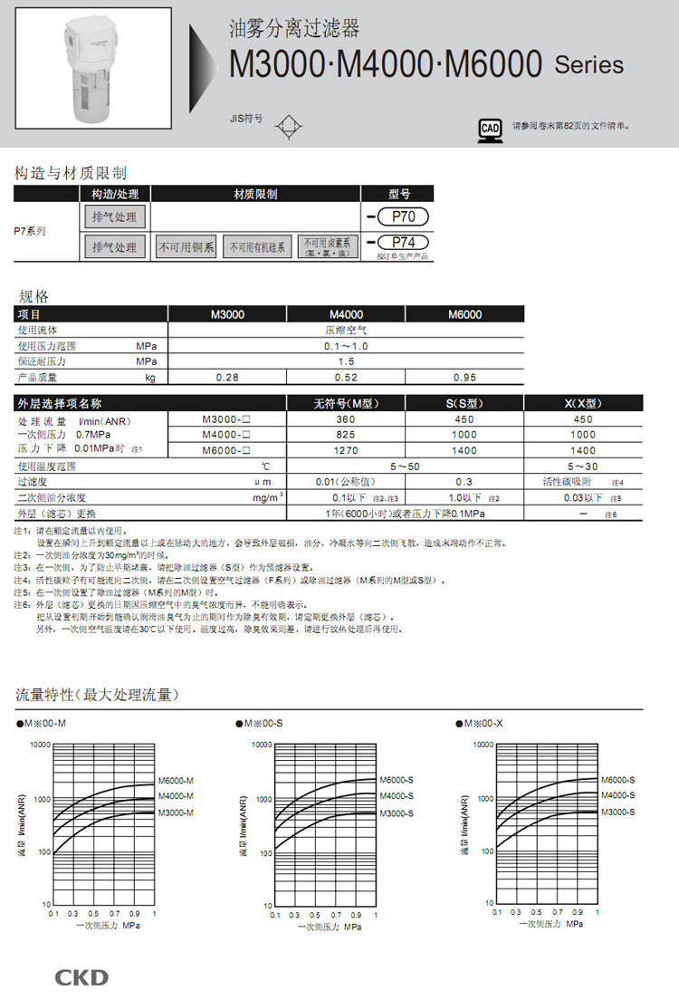 M3000-8,M3000-10,M4000-8,M4000-10,M4000-15,M6000-20,M6000-25,CKD油霧分離過(guò)濾器