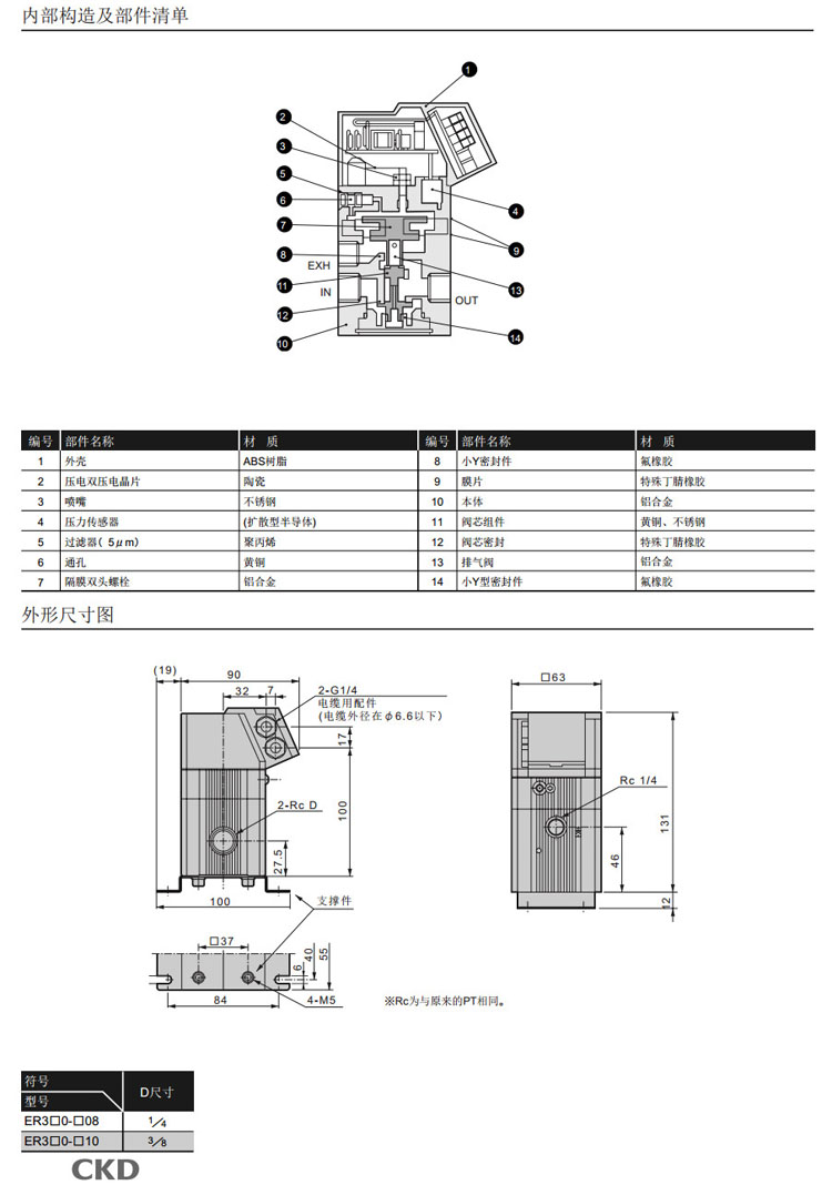 詳細信息 ER310-0-08,ER350-0-08,ER380-0-08,ER310-1-08,ER350-1-08,ER380-1-08,CKD比例電控減壓閥
