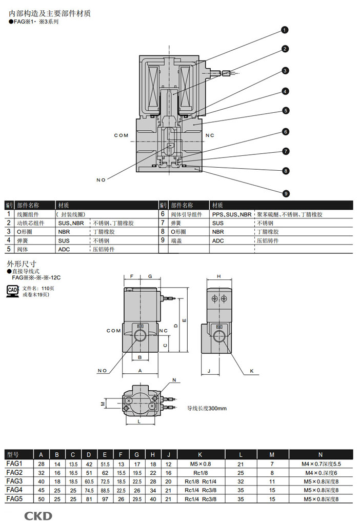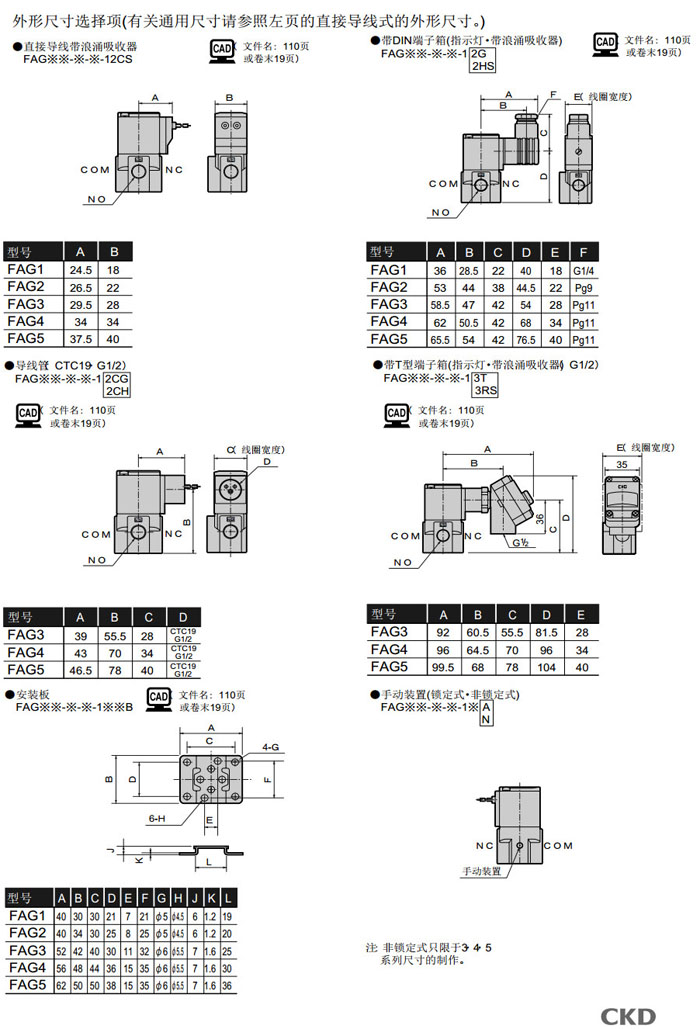 FAG11,FAG21,FAG31,FAG41,FAG51,FAG33,FAG43,FAG11-M5-Y-12C,FAG21-6-Z-12C,CKD直動(dòng)式3通電磁閥