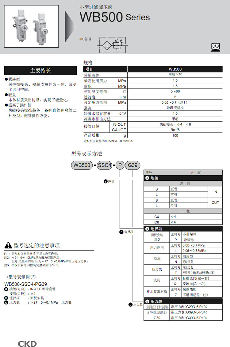 詳細(xì)信息 WB500-SSC4,WB500-SSC6,WB500-SLC4,WB500-SLC6,WB500-LSC4,WB500-LSC6,WB500-LLC4,WB500-LLC6,CKD過濾減壓閥