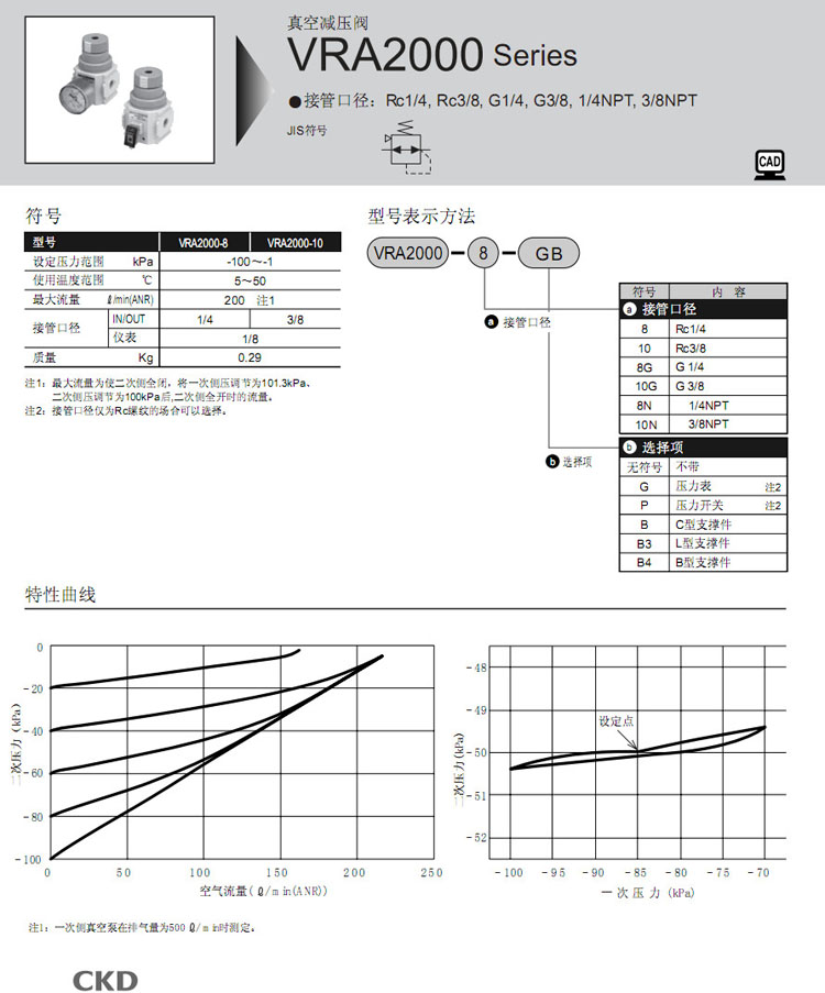 VRA2000-8,VRA2000-10,VRA2000-8G,VRA2000-10G,VRA2000-8N,VRA2000-10N,CKD真空減壓閥