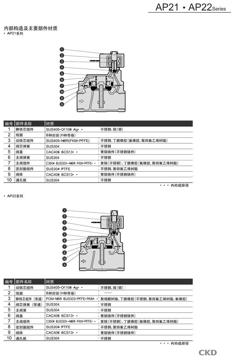 AP22-50F-N4A,AP22-50F-N4K,AP22-50F-N4H,AP22-50F-N5A,AP22-50F-N5K,AP22-50F-N5H,CKD先導(dǎo)式2通電磁閥