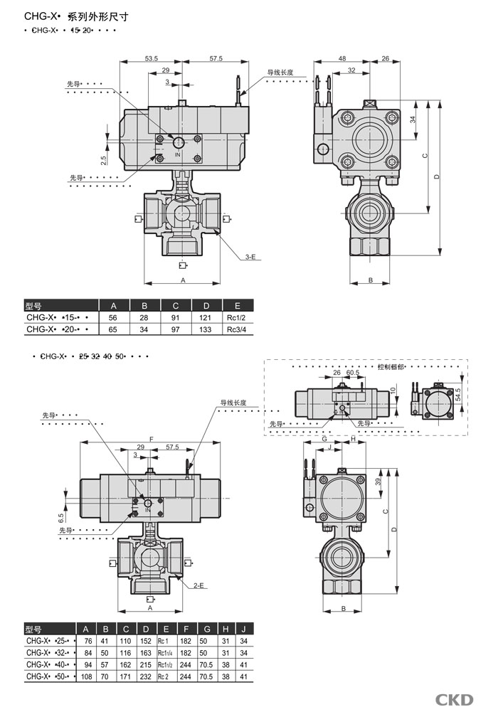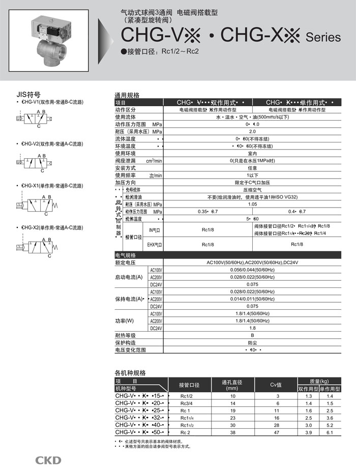 CHG-V1-15,CHG-V2-15,CHG-X1-15,CHG-X2-15,CHG-V1-20,CHG-V2-20,CHG-X1-20,CKD氣動式球閥3通閥