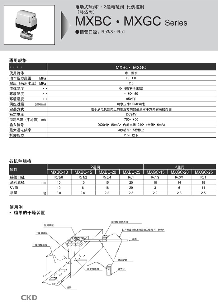 MXBC-10,MXBC-15,MXBC-20,MXBC-25,MXGC-15,MXGC-20,MXGC-25,MXBC-10-O-3,CKD電動(dòng)式球閥2·3通電磁閥