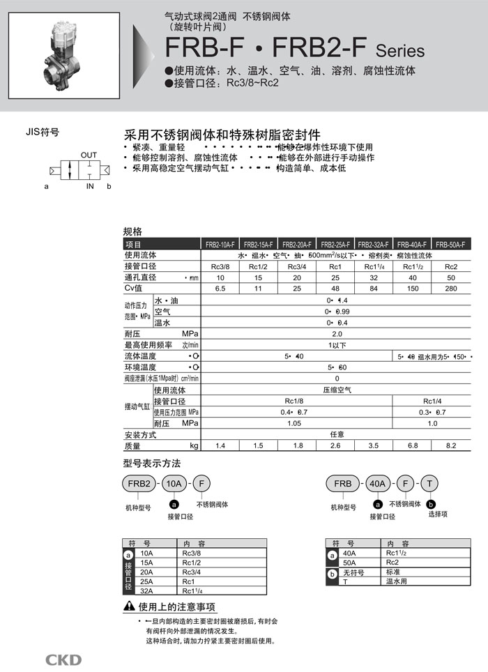 FRB2-10A-F,FRB2-15A-F,FRB2-20A-F,FRB2-25A-F,FRB2-32A-F,FRB-40A-F,FRB-50A-F,CKD氣動(dòng)式球閥2通閥