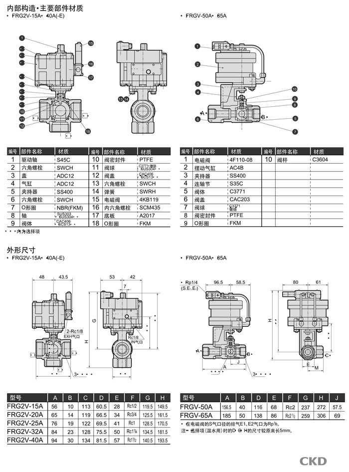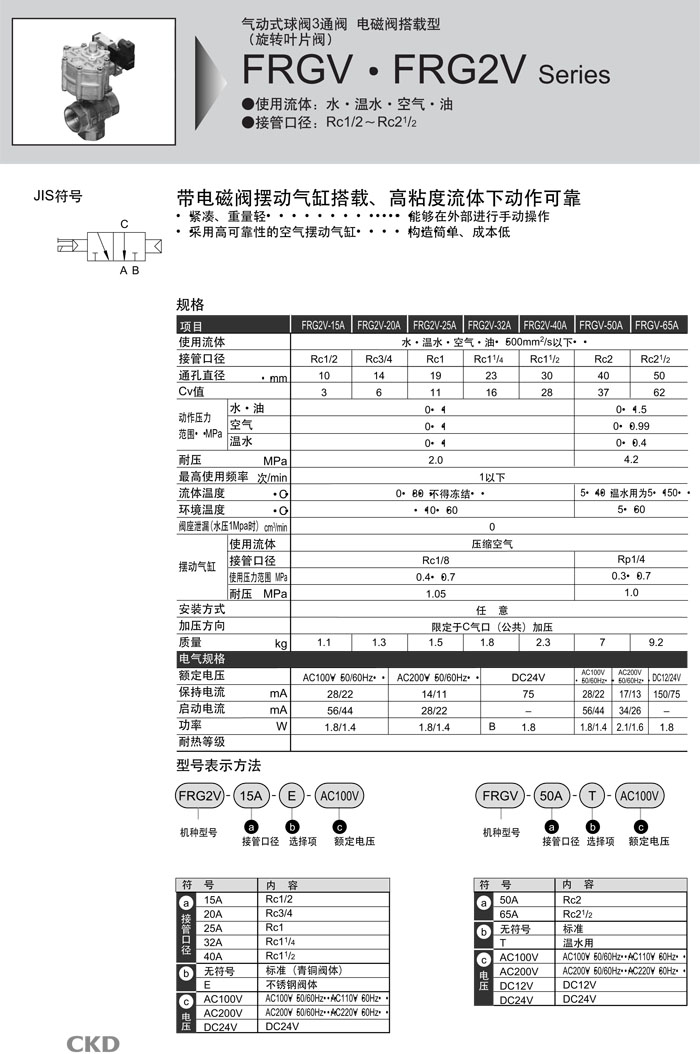 FRG2V-15A,FRG2V-20A,FRG2V-25A,FRG2V-32A,FRG2V-40A,FRGV-50A,FRGV-65A,CKD氣動(dòng)式球閥3通閥