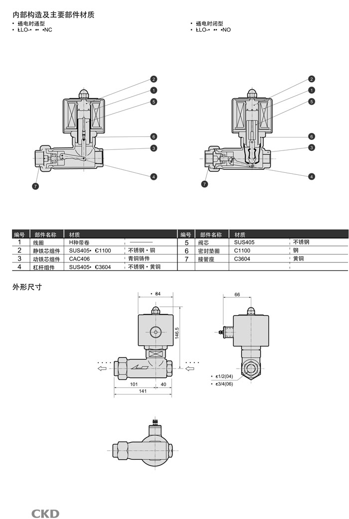 LLO-04-25,LLO-06-25,LLO-04-210,LLO-06-210,LLO-04-221,LLO-06-221,CKD直動式2通電磁閥
