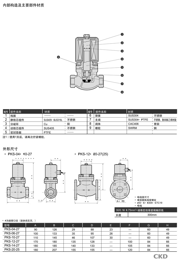 PKS-04-27,PKS-06-27,PKS-10-27,PKS-12-27,PKS-14-27,PKS-20-25,CKD先導式2通電磁閥