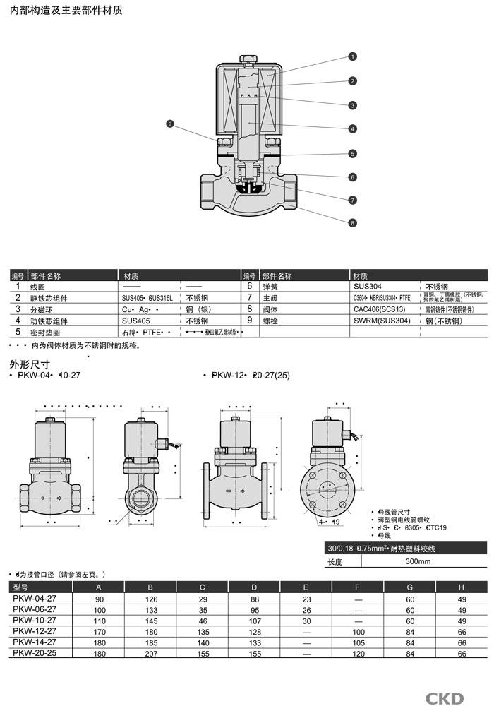 PKW-04-27,PKW-06-27,PKW-10-27,PKW-12-27,PKW-14-27,PKW-20-25,CKD先導式2通電磁閥