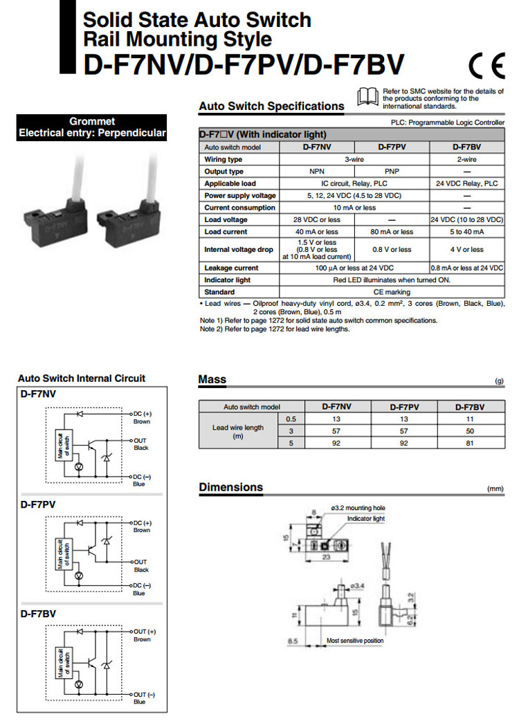 詳細信息 D-F7NV,D-F7PV,D-F7BV,SMC固態(tài)自動開關(guān)