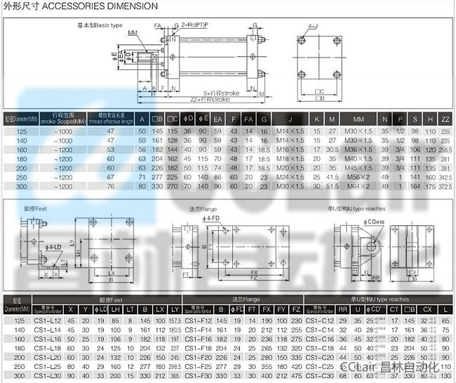 CS1BN160-1000,CS1BN160-1100,CS1BN160-1200,CS1BN160-1900,標(biāo)準型氣缸