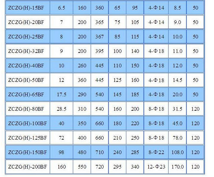 ZCZG-15BF,ZCZG-20BF,ZCZG-40BF,ZCZG-50BF,ZCZG-65BF,ZCZG-80BF,ZCZG-100BF,ZCZG-125BF,ZCZG-150BF,ZCZG-200BF,