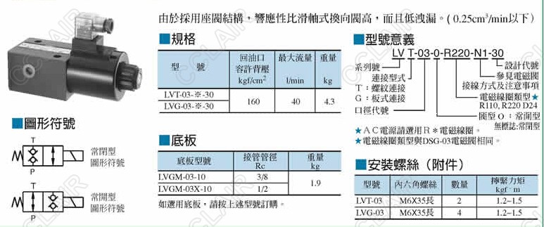 詳細(xì)信息 LVT-03-R220-N1-30,LVG-03-D24-N1-30,LVG-03,座閥型換向閥YUKEN