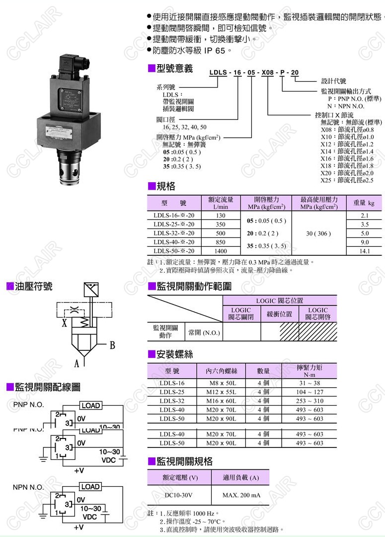 LDLS-25-P-20,LDLS-40-P-20,LDLS-50-N-20,LDLS-16-05-X08-P-20,帶監(jiān)視開關(guān)插裝邏輯閥YUKENLDLS-16-P-20,LDLS-16-N-20,