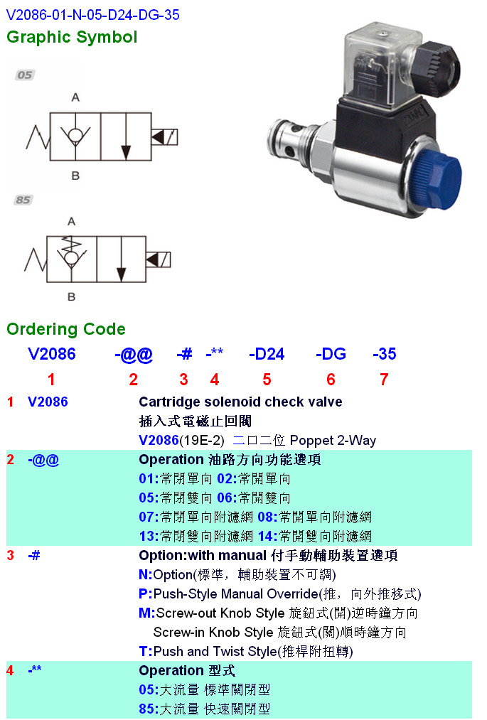 V2086-01-N-05-D24-DG-35,V2086-02,V2086-05,V2086-06,V2086-07,V2086-08,V2086-13,V2086-14,HYDROMAX插入式電磁止回閥