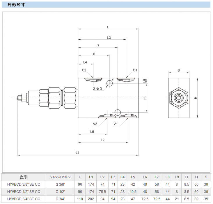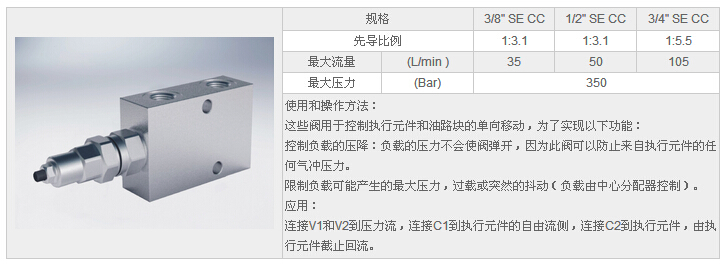 詳細(xì)信息 HYVBCD 3/8" SE CC,HYVBCD 1/2" SE CC,HYVBCD 3/4" SE CC,中心閉合的單向平衡閥