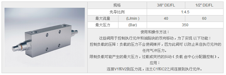 詳細(xì)信息 HYVBCD 3/8" DE/FL,HYVBCD 1/2" DE/FL,法蘭式雙向先導(dǎo)疊加閥