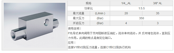 詳細信息 HYVBPDE 1/4"AL,HYVBPDE 3/8"AL,先導式雙單向閥