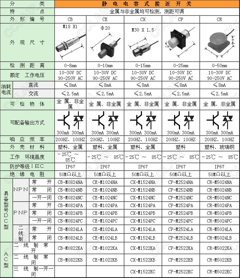CB-M0824NA,CE-M1024NA,CX-M1524NA,CP-M2524NA,CR-M5024NA,CB-M0824NB,CE-M1024NB,CX-M1524NB,靜電電容式接近開關(guān)