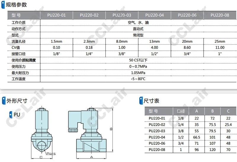 PU220-01,PU220-02,PU220-03,PU220-04,PU220-06,PU220-08,PU220-01-AC24V,直動(dòng)式電磁閥