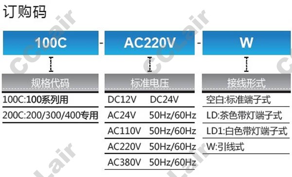 100C-DC12V-LD,200C-AC24V-LD1,100C-AC110V,200C-AC220V,100C-AC380V,200C-AC380V-W,線圈