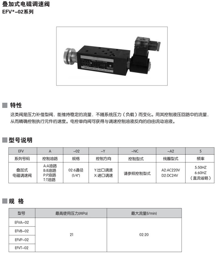 EFVA-02,EFVB-02,EFVP-02,EFVT-02,EFVA-02-X-NO,EFVP-02-X-NO,EFVB-02-X-NO,疊加式電磁調速閥