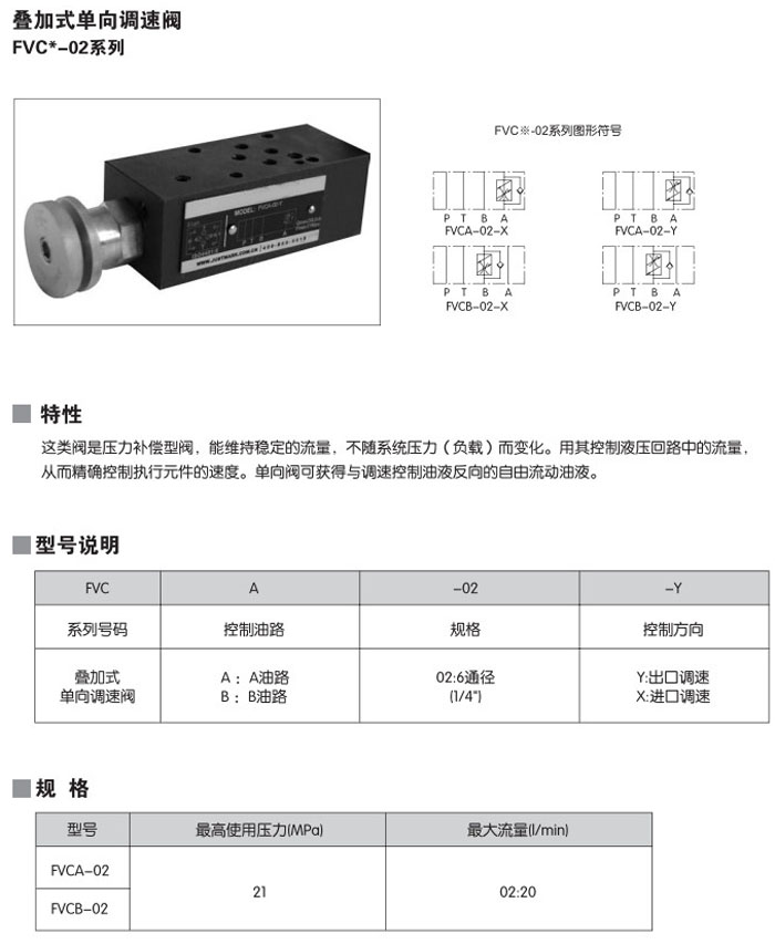 FVCA-02-X,FVCA-02-Y,FVCB-02-X,FVCB-02-Y,疊加式單向調(diào)速閥 詳細信息 FVCA-02-X,FVCA-02-Y,FVCB-02-X,FVCB-02-Y,疊加式單向調(diào)速閥