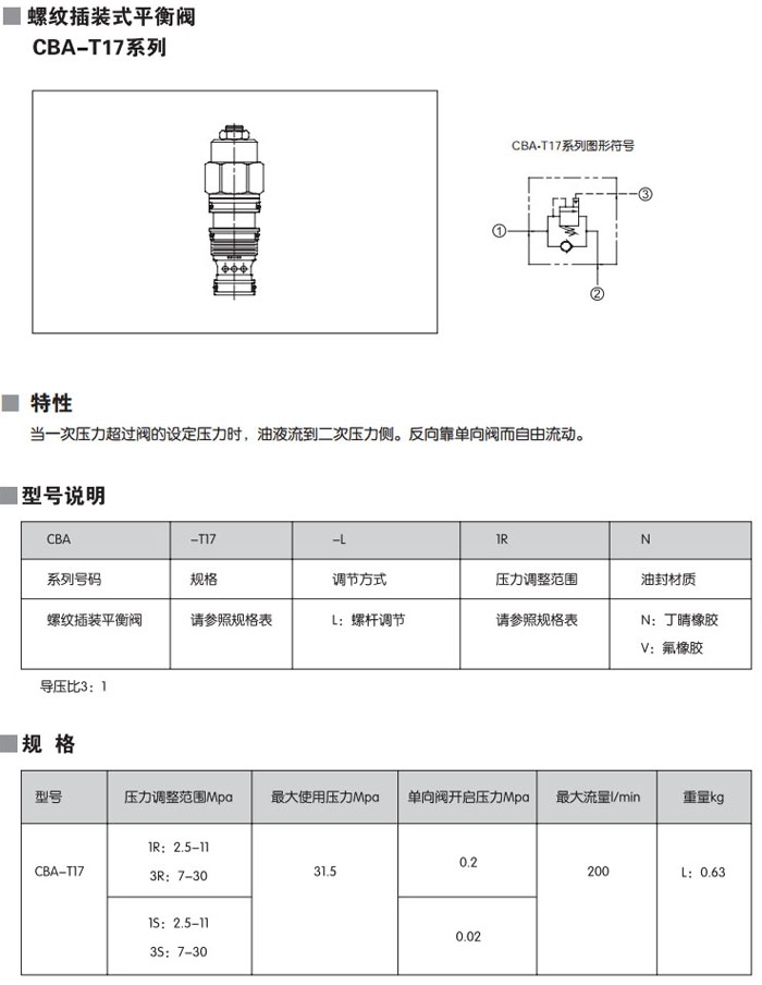 CBA-T17-L1RN,CBA-T17-L3RN,CBA-T17-L1SN,CBA-T17-L3SN,CBA-T17-L1RV,CBA-T17-L3RV,螺紋插裝式平衡閥 詳細信息 CBA-T17-L1RN,CBA-T17-L3RN,CBA-T17-L1SN,CBA-T17-L3SN,CBA-T17-L1RV,CBA-T17-L3RV,螺紋插裝式平衡閥