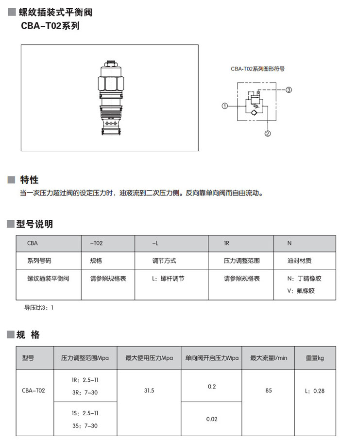 CBA-T02-L1RN,CBA-T02-L3RN,CBA-T02-L1SN,CBA-T02-L3SN,CBA-T02-L1RV,CBA-T02-L3RV,螺紋插裝式平衡閥 詳細信息 CBA-T02-L1RN,CBA-T02-L3RN,CBA-T02-L1SN,CBA-T02-L3SN,CBA-T02-L1RV,CBA-T02-L3RV,螺紋插裝式平衡閥