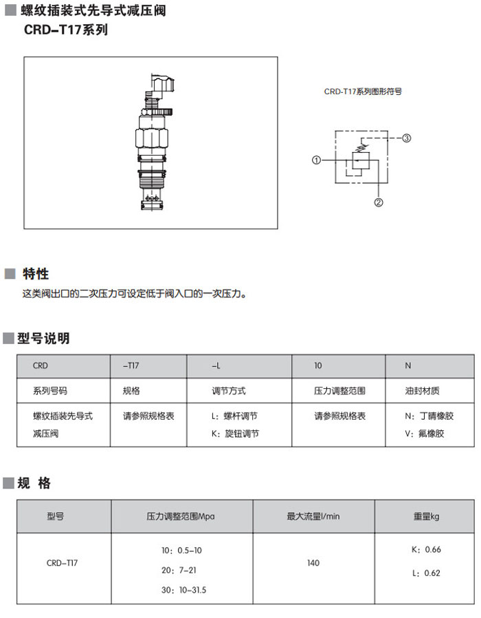 CRD-T17-L03N,CRD-T17-L10N,CRD-T17-L20N,CRD-T17-K03N,CRD-T17-K10N,CRD-T17-L30N,螺紋插裝式先導(dǎo)式減壓閥 詳細(xì)信息 CRD-T17-L03N,CRD-T17-L10N,CRD-T17-L20N,CRD-T17-K03N,CRD-T17-K10N,CRD-T17-L30N,螺紋插裝式先導(dǎo)式減壓閥