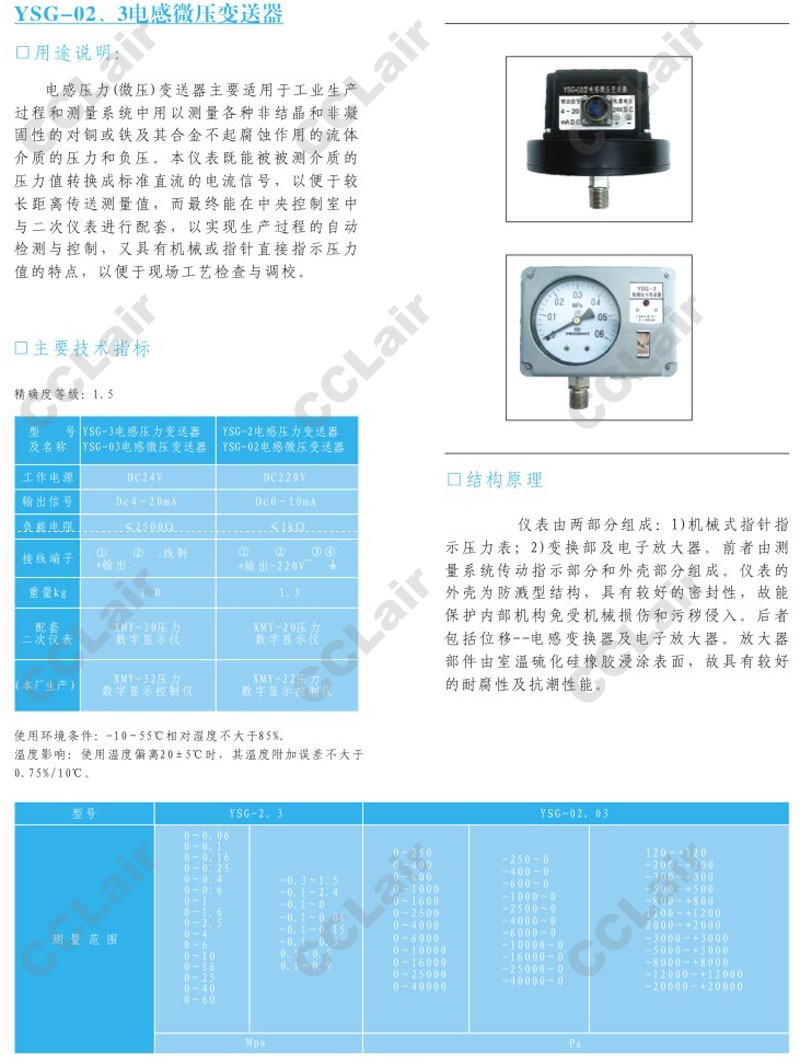 YSG-02,YSG-03,電感微壓變送器,CCLair