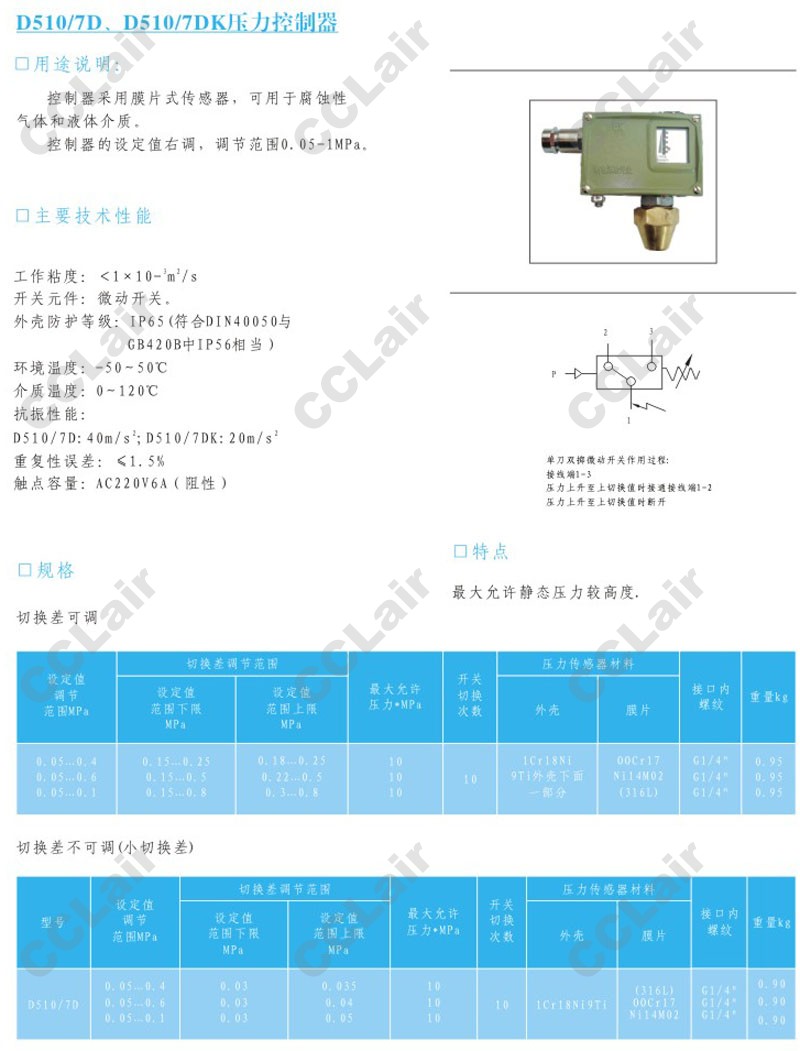 » D510/7D,D510/7DK,壓力控制器,CCLair