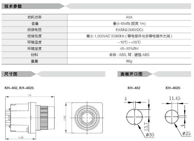 KH-402-1,KH-4025-1,KH-402-2,KH-4025-2,Koino交流蜂鳴器