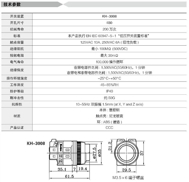 詳細(xì)信息 KH-3008,Koino Φ30重負(fù)荷開關(guān)