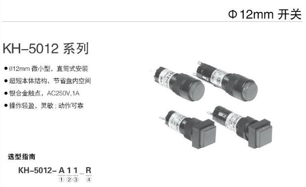 您當(dāng)前的位置:首頁 » 產(chǎn)品&解決方案 » KH-5012-C00,KH-5012-C11,KH-5012-C21,KH-5012-A00,KH-5012-A11,KH-5012-A21,Koino Φ12mm開關(guān)