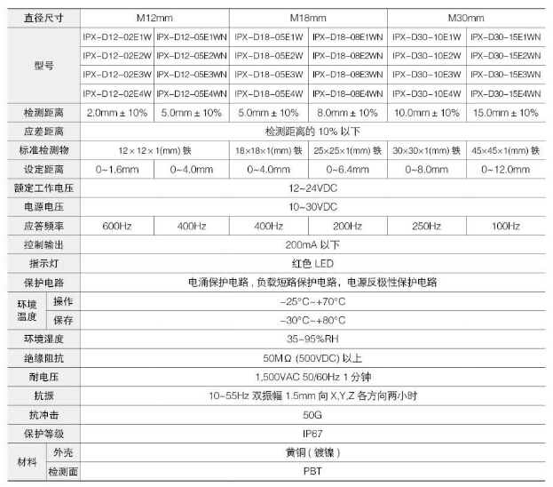 IPX-2D30-10A1W,IPX-A12-02A1W,IPX-A18-05A1W,IPX-A30-15A2WN,Koino圓柱形接近開關(guān)