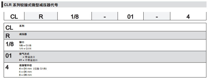 型號: CLR1/8-01-4,CLR1/8-01-6,CLR1/8-01-8,CLR1/4-01-4