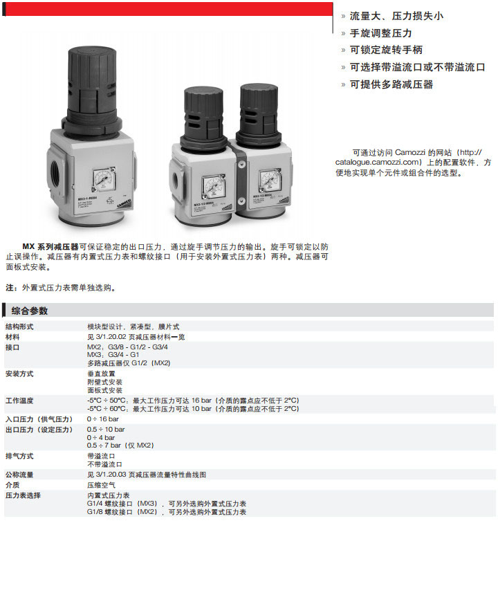 MX2-3/8-R000,MX3-1/2-M402,MX2-3/4-R703,MX3-1-M003,camozzi減壓器