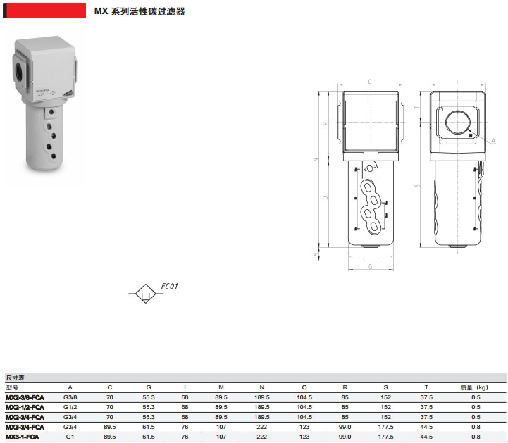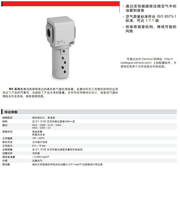詳細信息 MX2-3/8-FCA,MX2-1/2-FCA,MX2-3/4-FCA,MX3-3/4-FCA,MX3-1-FCA,camozzi活性碳過濾器