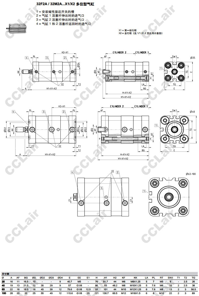 32M2A025A050N2,32F2A025A050N2,32M2A040A050N3,camozzi氣缸